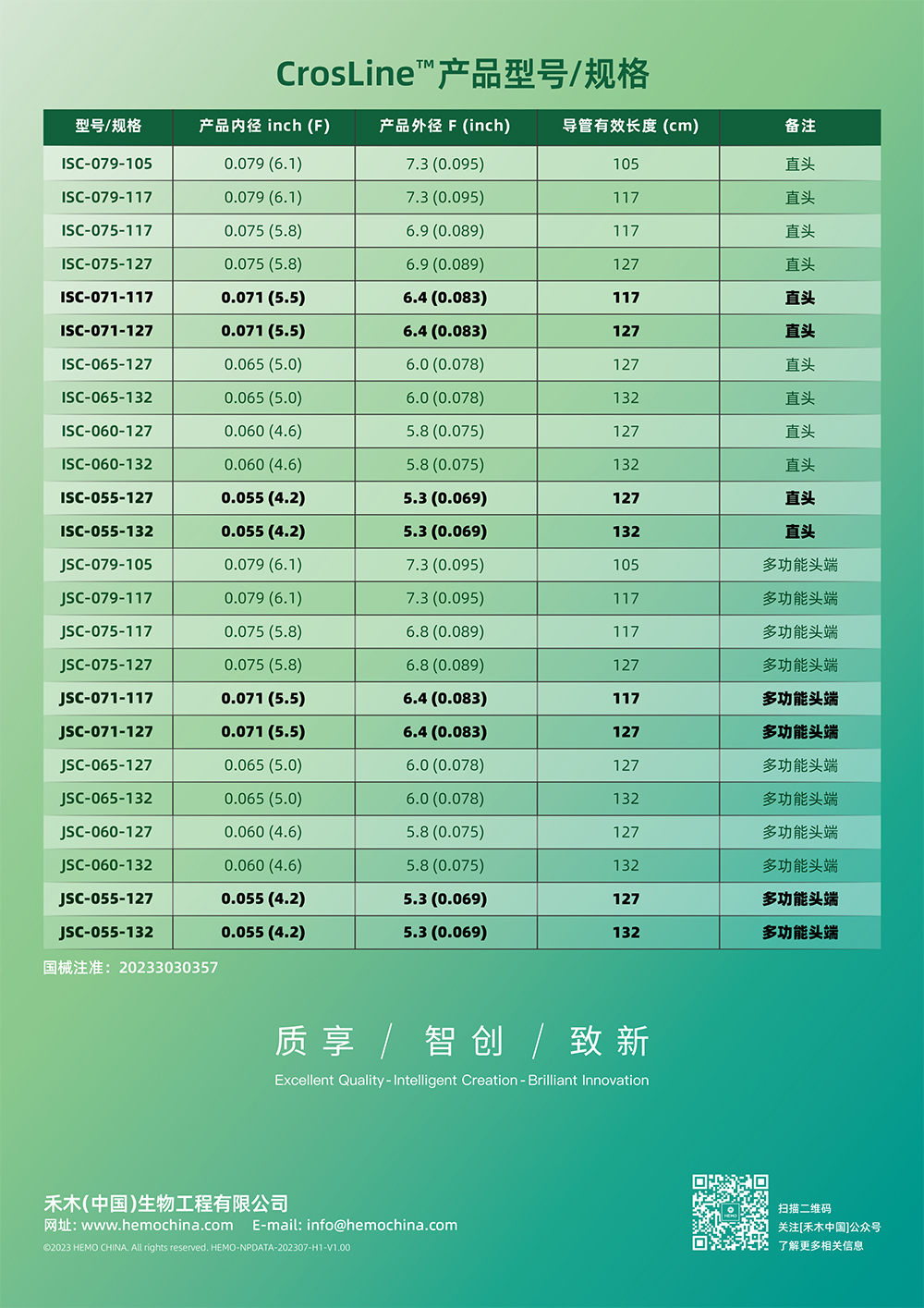 | 型号/规格 | 产品内径 inch (F) | 产品外径 F (inch) | 导管有效长度 (cm) | 备注 |